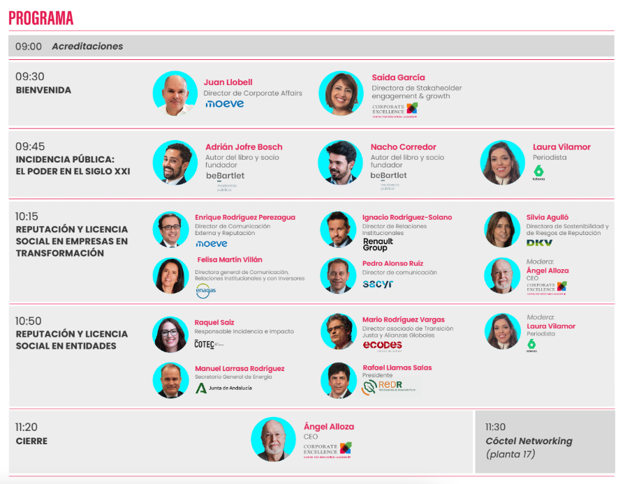Te invitamos a una jornada de aprendizaje continuo y reflexión estratégica junto a Moeve, en la que exploraremos cómo las organizaciones pueden construir y mantener la confianza de sus grupos de interés a través de una gestión excelente de la reputación y la sostenibilidad.