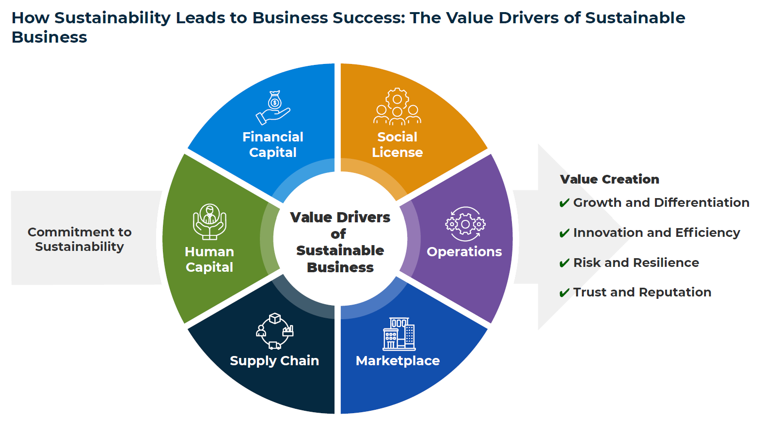 El informe identifica seis impulsores que conectan la sostenibilidad con la creación de valor empresarial:.