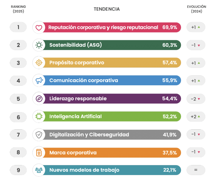 - La reputación corporativa encabeza todos los rankings del país, tanto de importancia como de inversión.