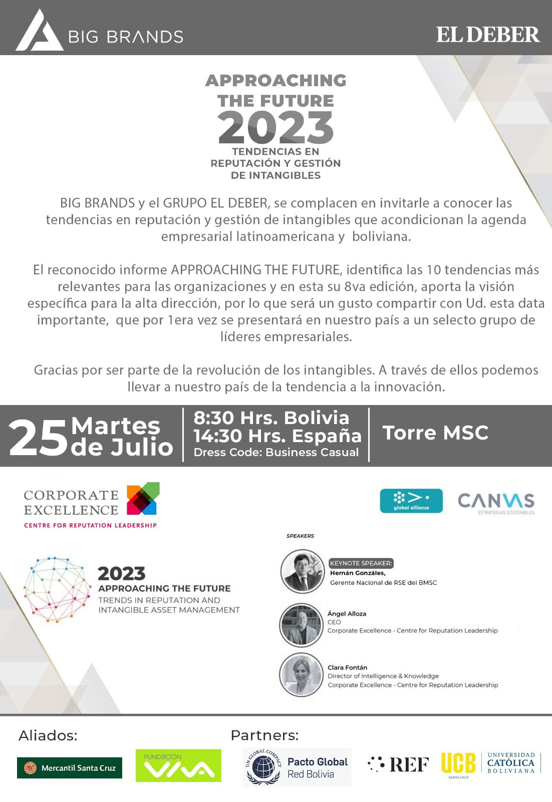Te invitamos a la presentación de los resultados de Sudamérica del estudio Approaching the Future 2023. Tendencias en Reputación y Gestión de Intangibles que anualmente elabora Corporate Excellence – Centre for Reputation Leadership junto a CANVAS Estrategias Sostenibles y Global Alliance como worldwide partner.