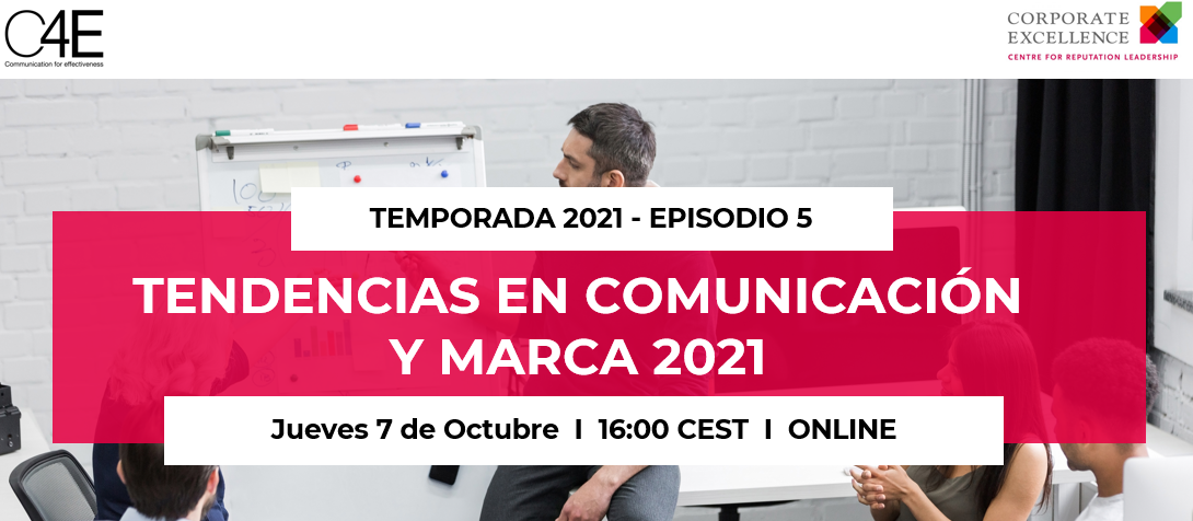 Te invitamos al quinto episodio de 2021 de nuestra serie Trends & Reputation: tendencias en reputación, marca y comunicación. En esta ocasión, volvemos a hablar sobre Tendencias en marca y comunicación 2021 de la mano de Juan de Los Ángeles, CEO de C4E - Communication for Effectiveness